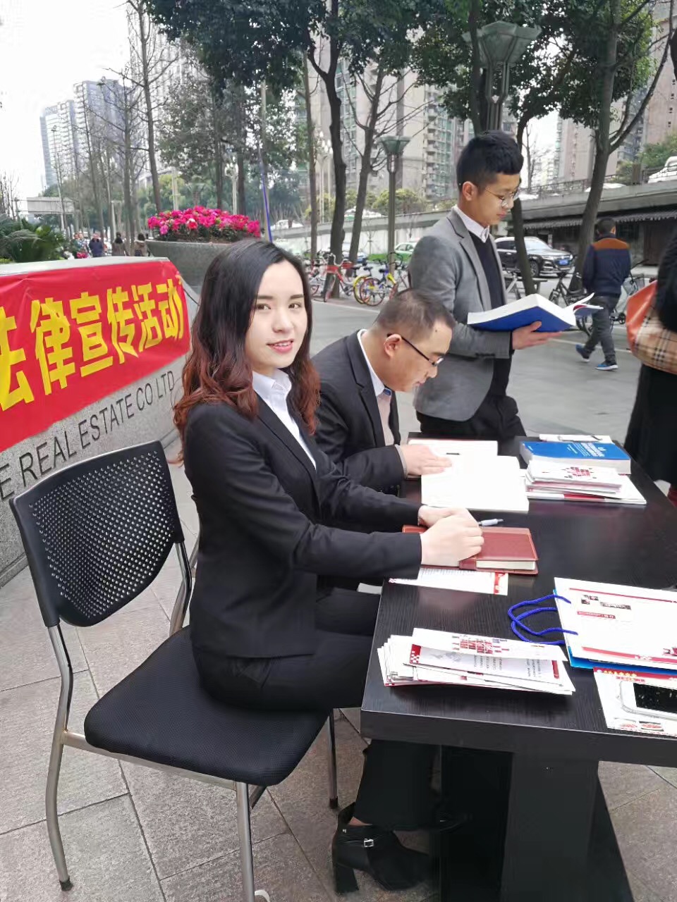 早上8点不到,四川川商律师事务所的律师们就已经陆陆续续赶来布置活动现场,拉开横幅、摆上咨询桌椅、拿上宣传手册,一切准备就绪!